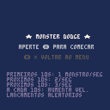 Use as teclas WASD para mover e desvie o quanto puder dos monstros, boa sorte!